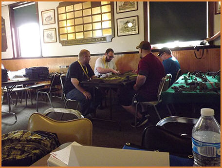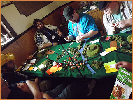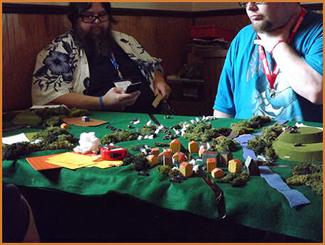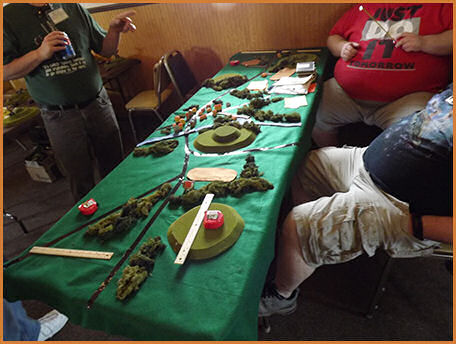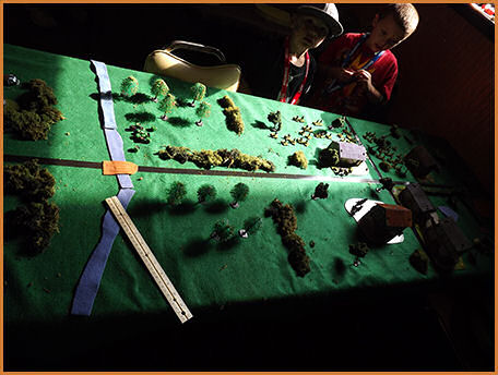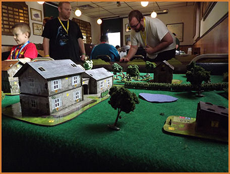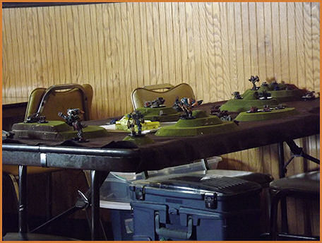 An example of some Warhammer 40K Scott getting the microarmor table set up Microarmor all set up The game begins More of the microarmor game A close up of the microarmor Another close up of the microarmor The microarmor continues Table level view of the microarmor action Another table level view of the microarmor The microarmor winding down Mechwarrior terrain coming together Some pre-game Mechwarrior staging Another view of the Mechwarrior staging A close up of a Mechwarrior mech A Mechwarrior armor unit and infantry unit The Mechwarrior game underway Austin and Caleb looking on at the Skirmish table layout Table level view of Skirmish Another table level view of Skirmish More table level view of Skirmish A view of the finished Skirmish terrain