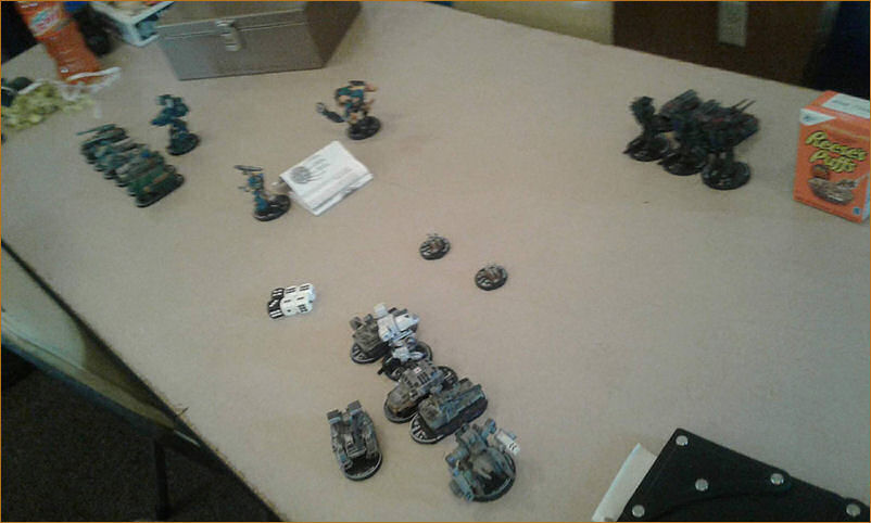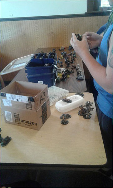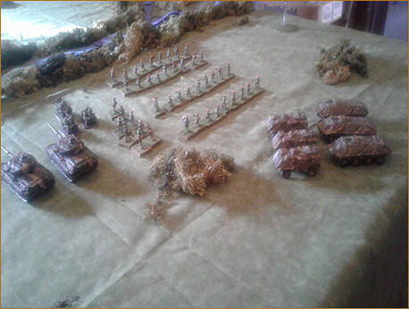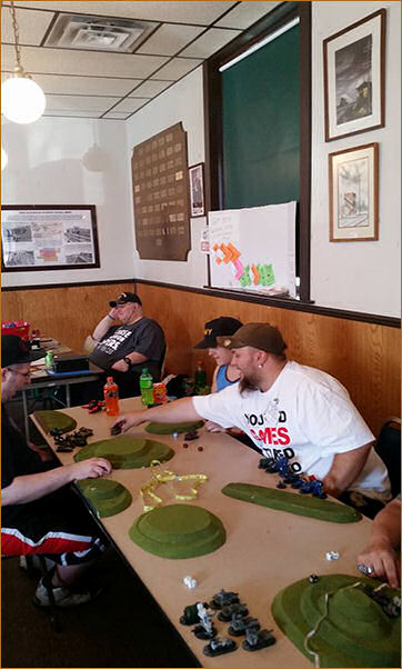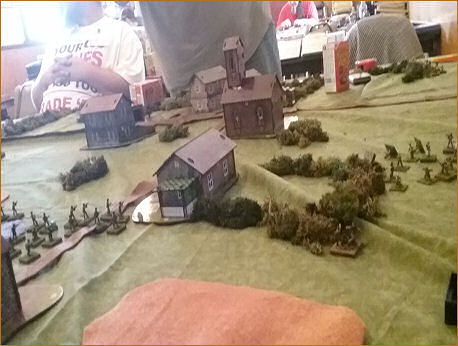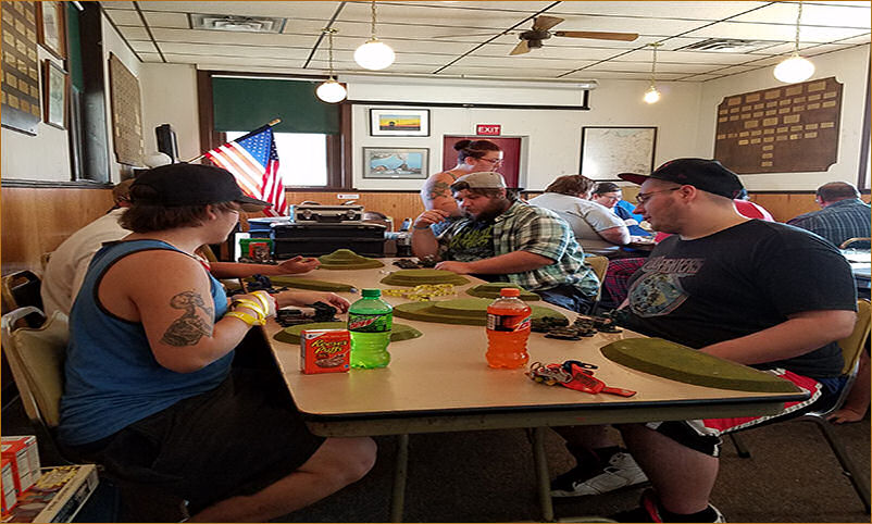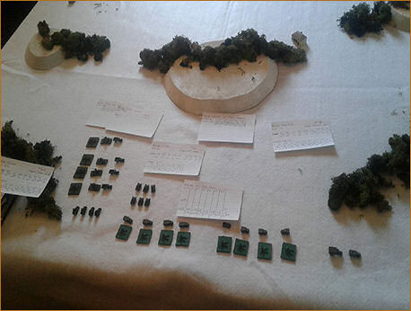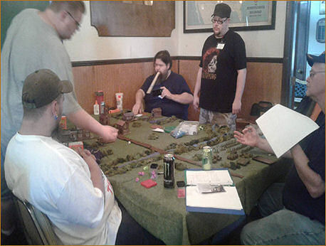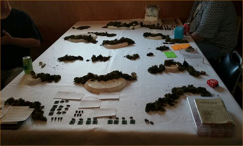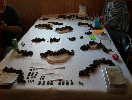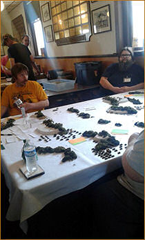 Choosing some mechs and other Mechwarrior units The beginnings of a Mechwarrior match Mechwarrior action ensues! Mechwarrior battling along! Microarmor "Assault 1942" being set up A close up of the microarmor Another close up of the microarmor Some of the microarmor pieces for the battle A view of the microarmor pieces and info cards Some microarmor units on a snow covered hill Microarmor players eyeing their opponents' moves closely The Skirmish game being set up More of the Skirmish layout The Skirmish players hard at it, but having a blast