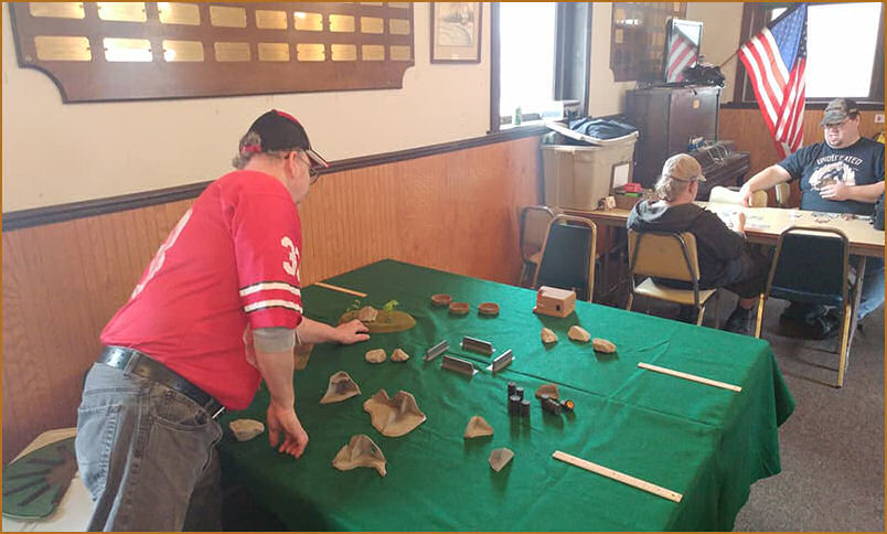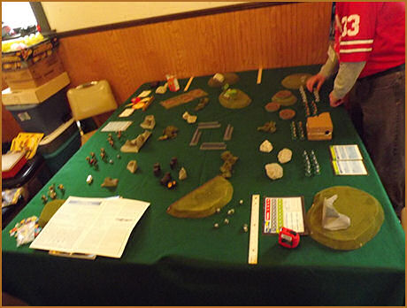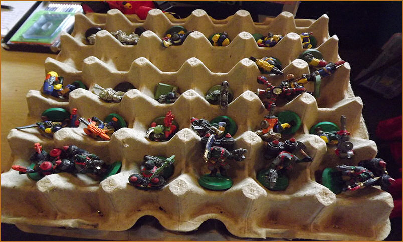 • A tray of Warhammer 40K pieces, ready to be placed for the upcoming battle
